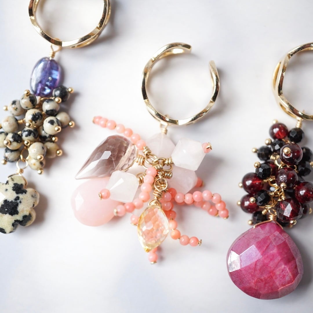 ローズ系天然石をミックスした、まるで花束のような温かみのあるカラー。