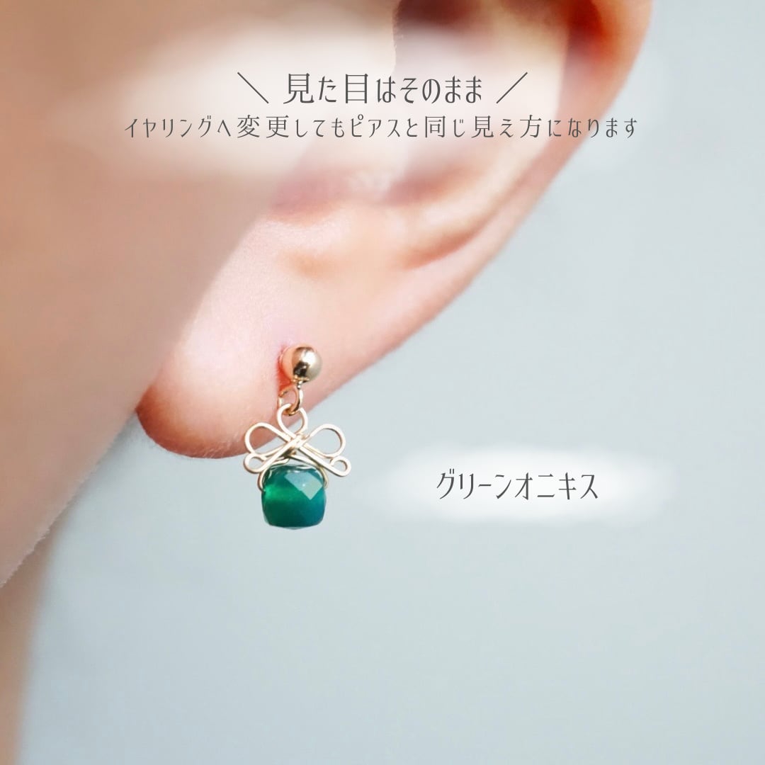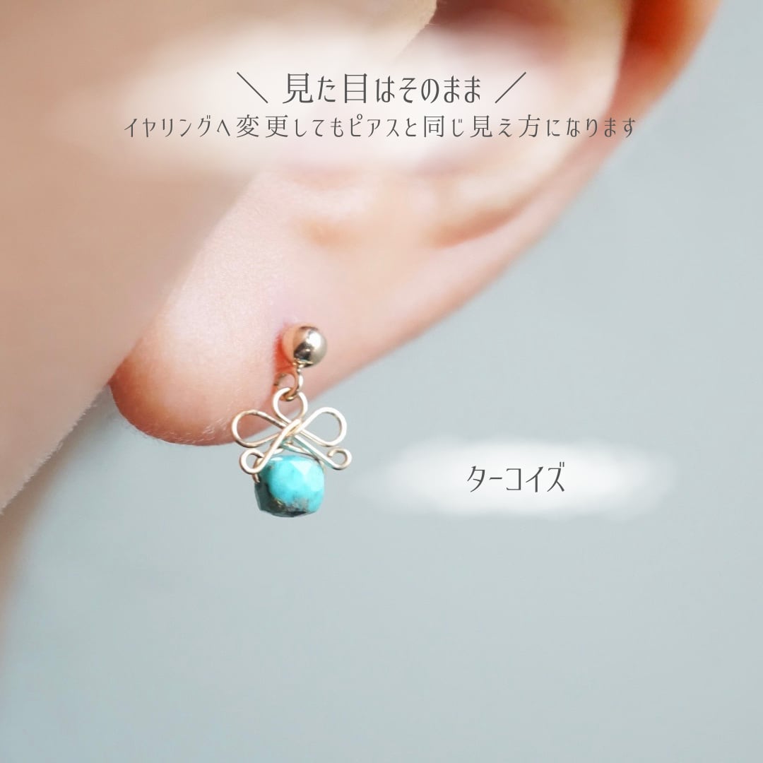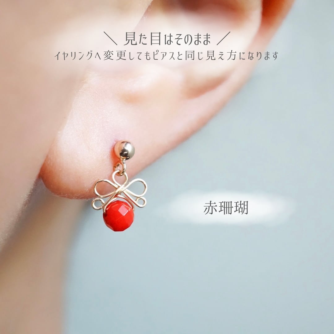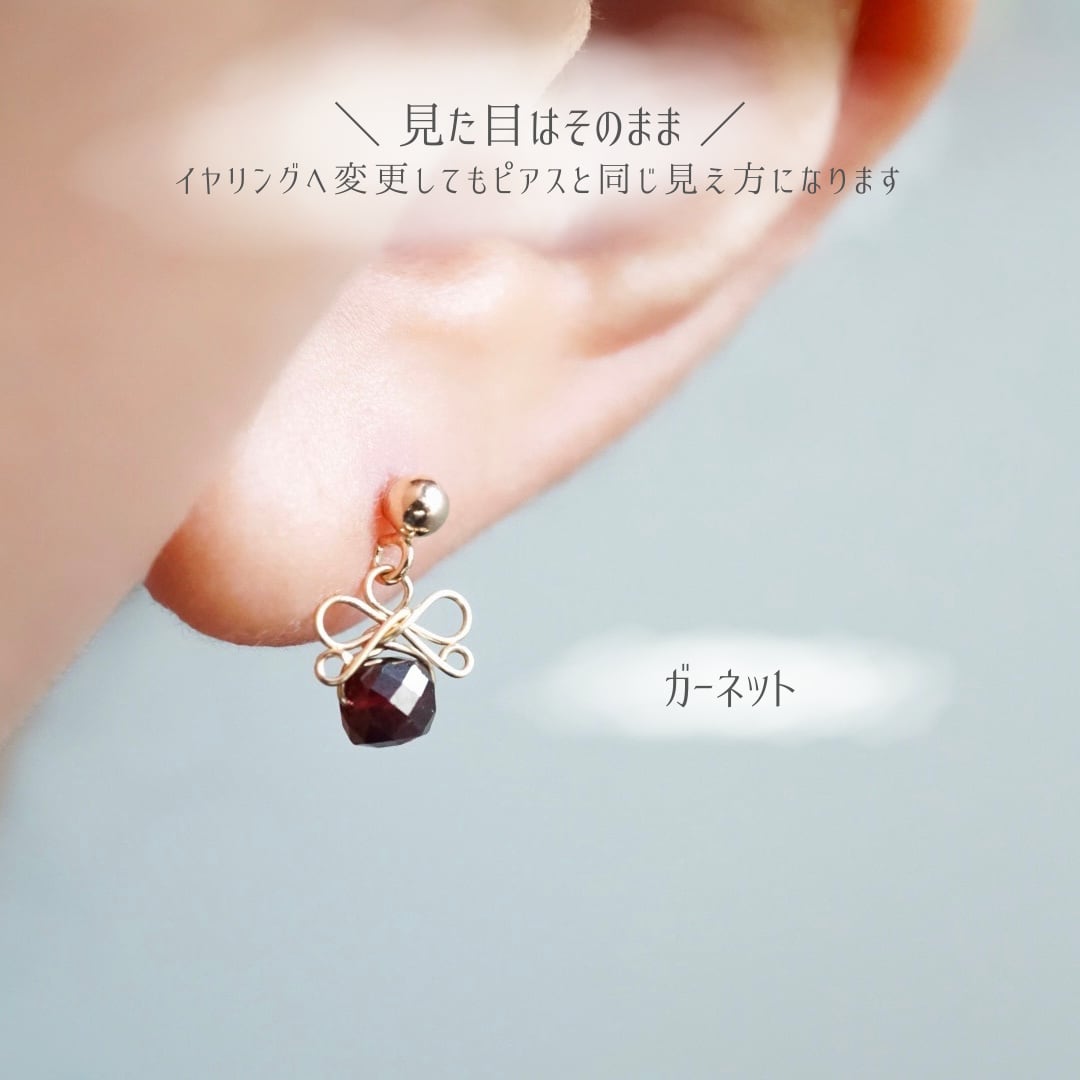 【選べる天然石】小さなリボン/ピアスorイヤリング
