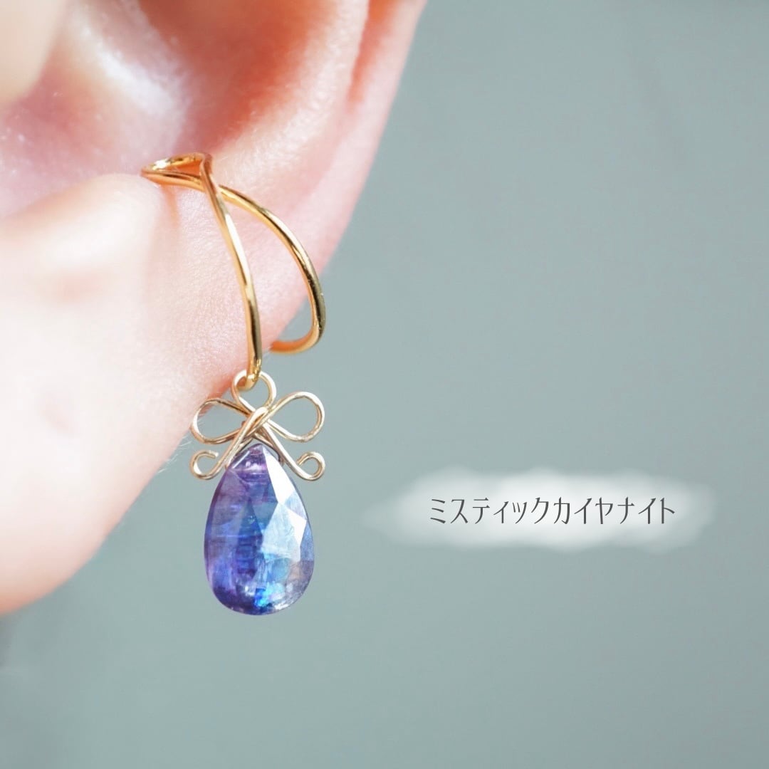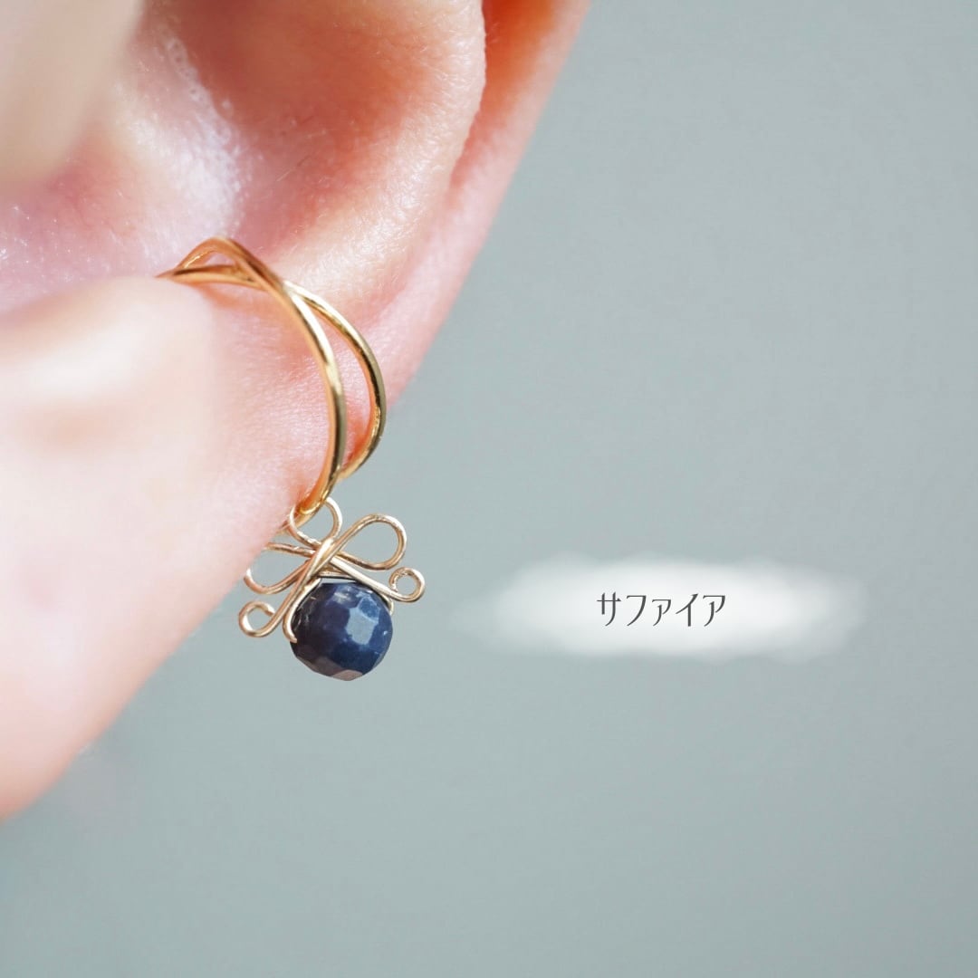 【イヤーカフ】「小さなリボン」片耳 天然石 誕生石 金属アレルギー対応 冬 クリスマス 推し活 メンカラ ギフト