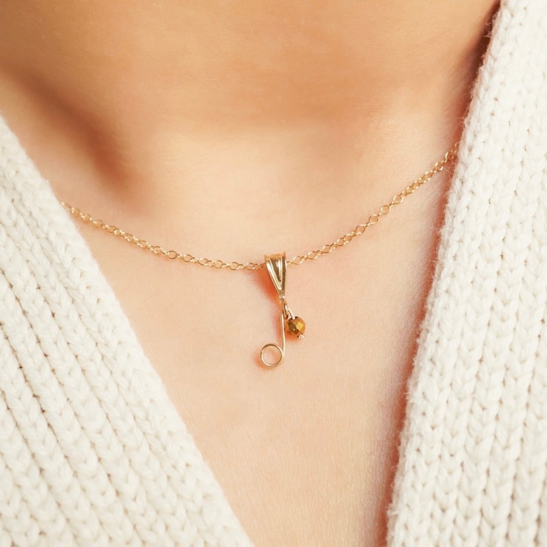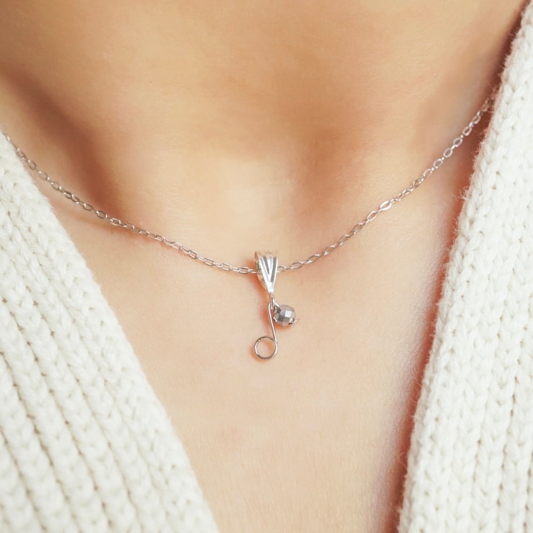 【ネックレス】「小さな音符」ヘマタイト ト音記号 シルバー ゴールド 天然石 14kgf アレルギー対応 音楽 発表会 結婚式 フォーマル
