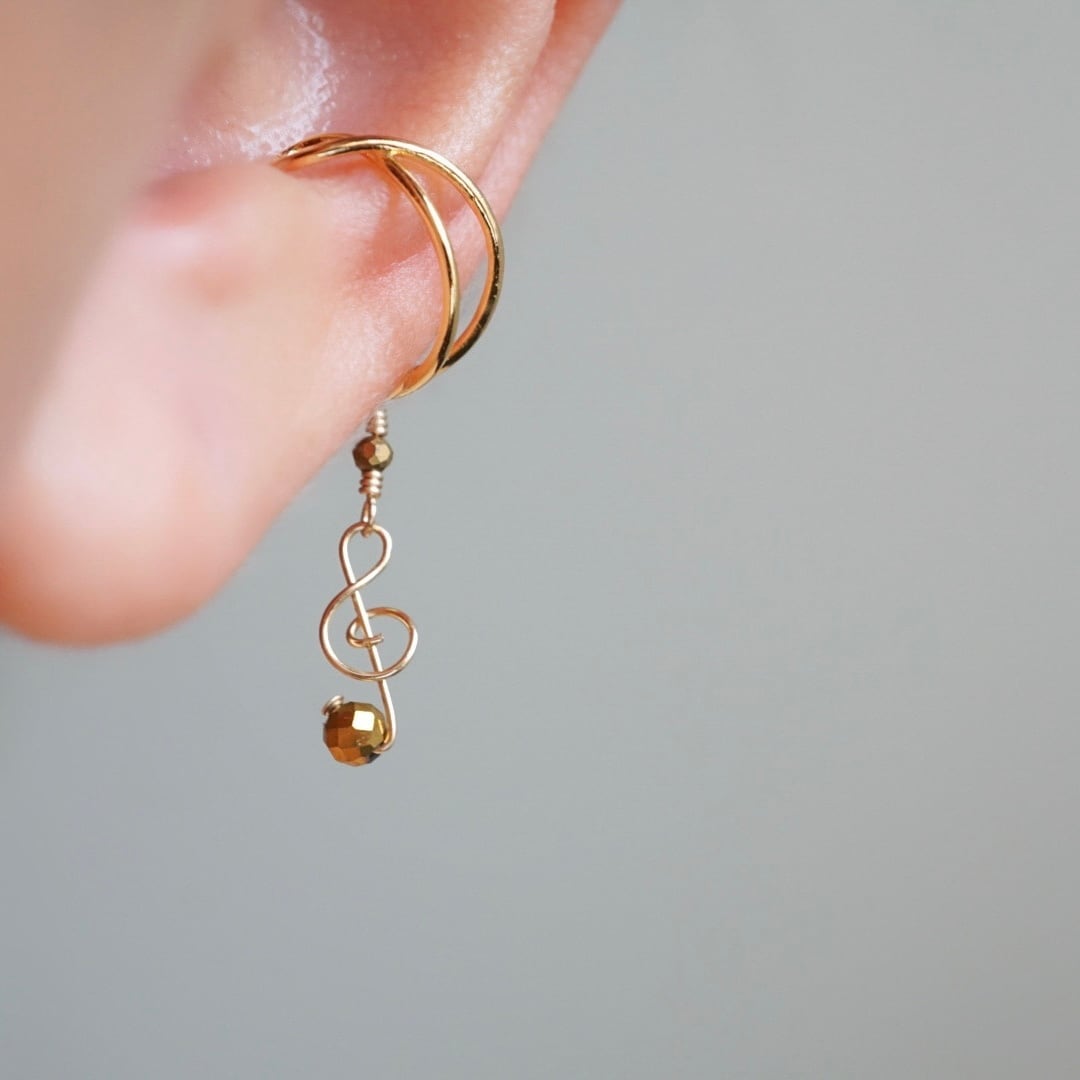 【イヤーカフ】「小さな音符」ヘマタイト 片耳 ト音記号 シルバー ゴールド 天然石 音楽 発表会 結婚式 フォーマル