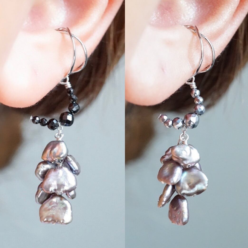 「雲間の三日月」天然石 イヤーカフ 片耳 誕生石 淡水パール ブラックスピネル シルバー ギフト プレゼント