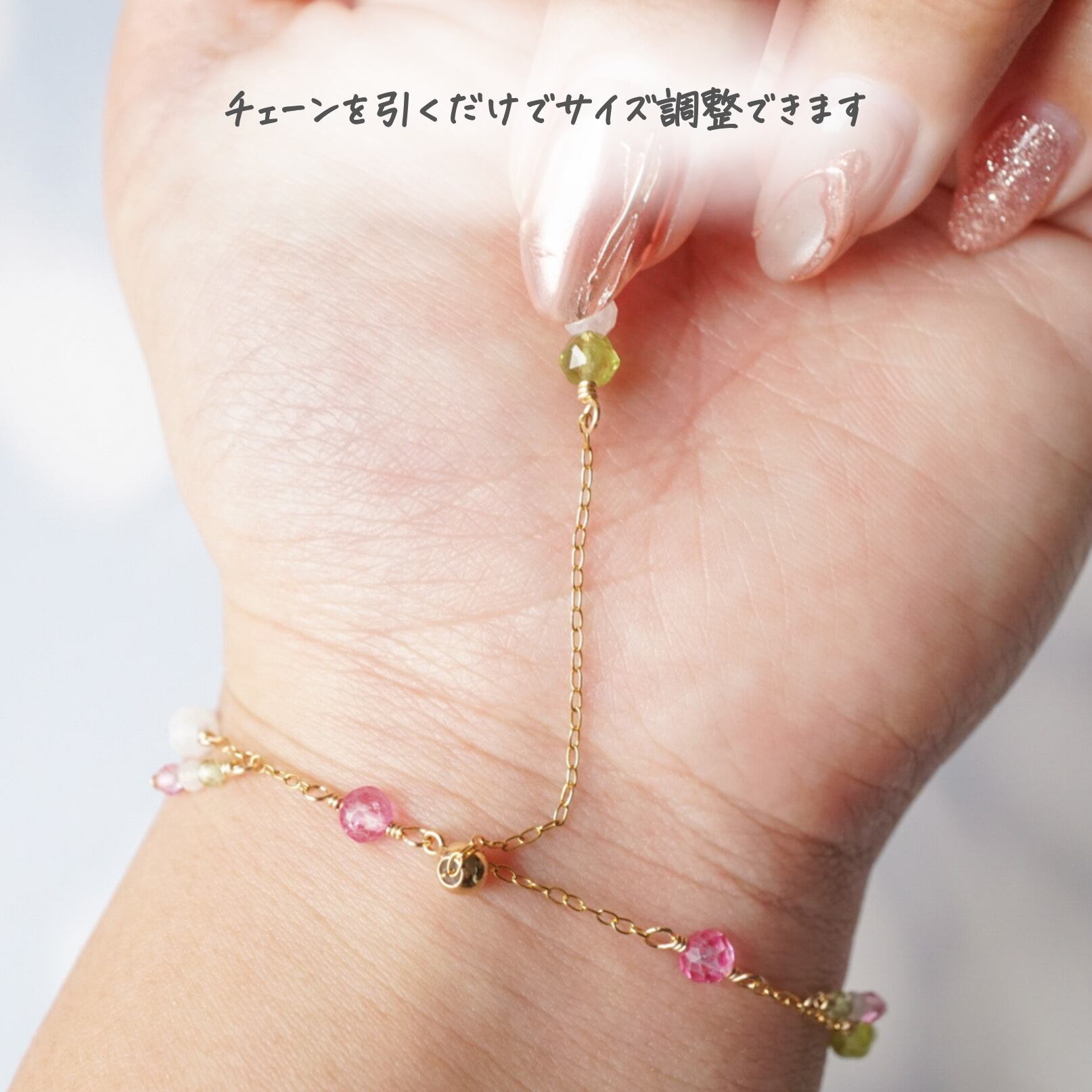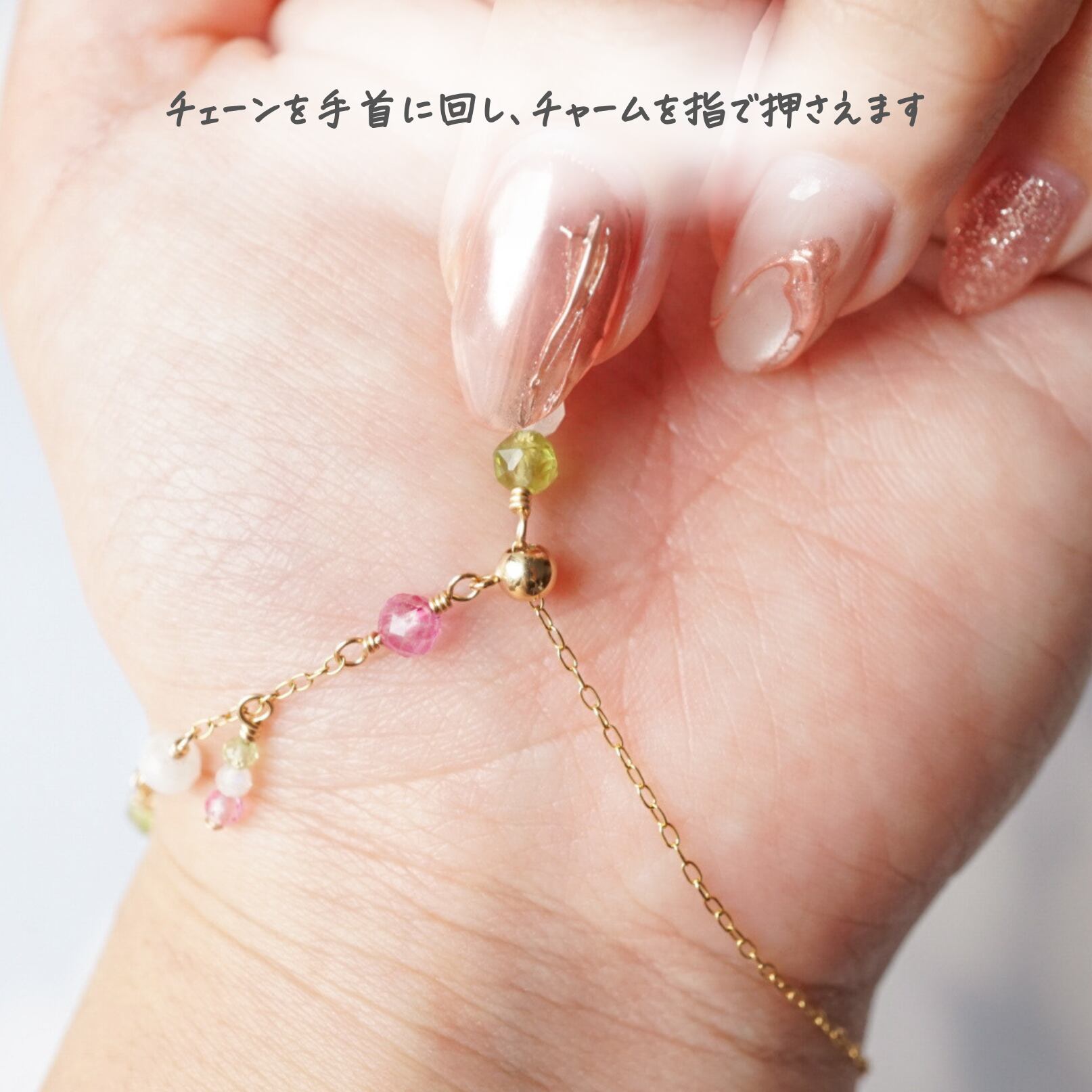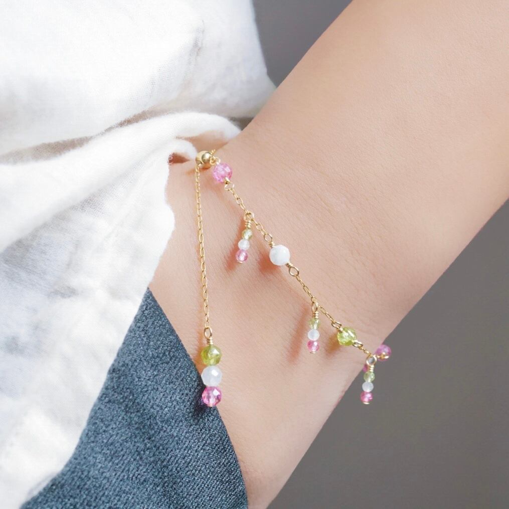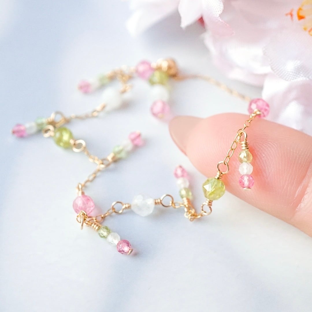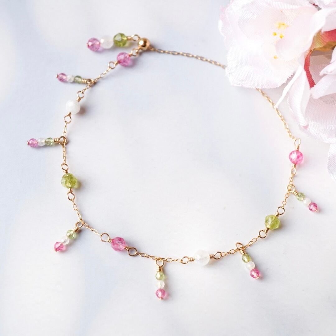 「花より団子」天然石 ブレスレット 誕生石 春 和菓子 三色団子 母の日 ピンクトパーズ ペリドット ムーンストーン