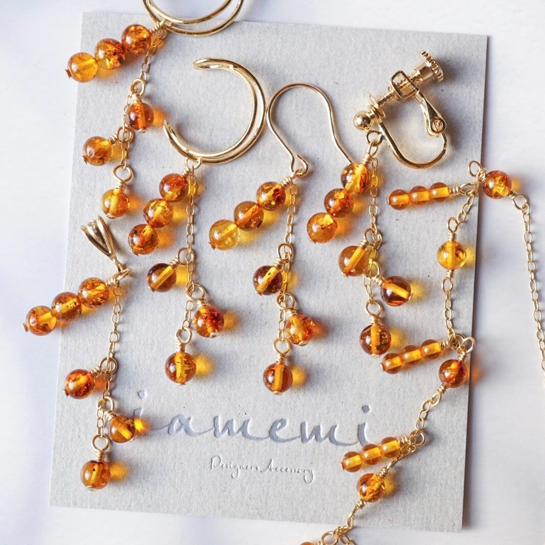 「みたらし団子」天然石 イヤーカフ アンバー 琥珀 和菓子 着物 和装 母の日 ユニーク ギフト プレゼント