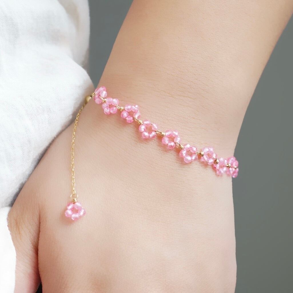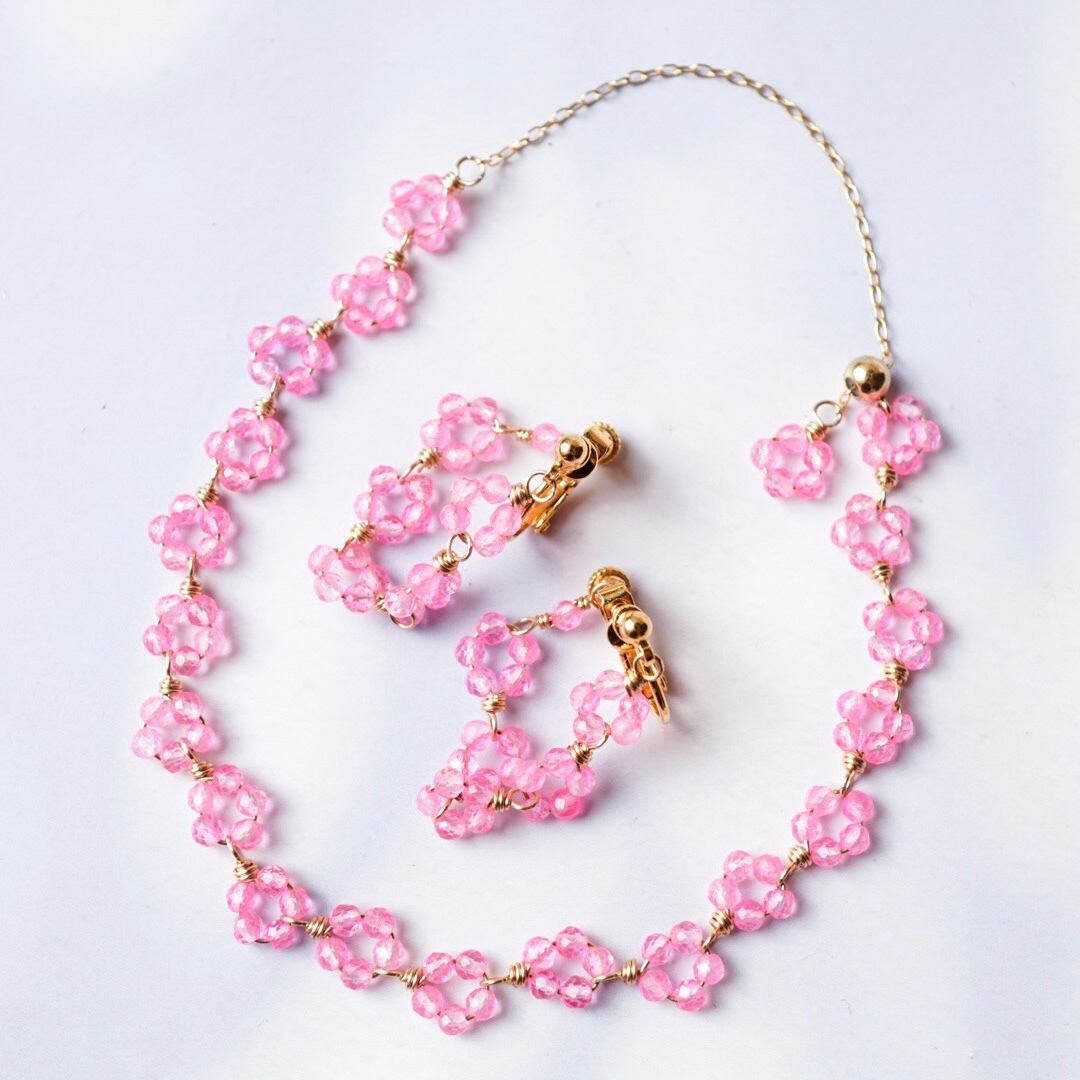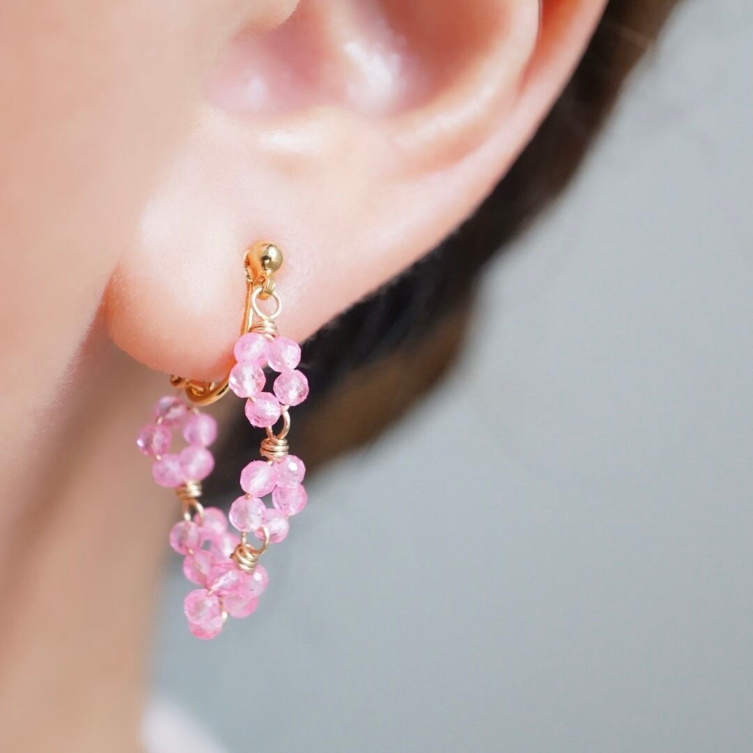 小さなピンクトパーズをひとつひとつ束ねて、