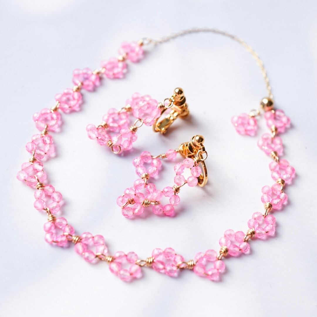 【1点限定セット】「桜のブーケ」天然石 ピアス イヤリング ブレスレット ピンクトパーズ 11月誕生石 母の日 ギフト