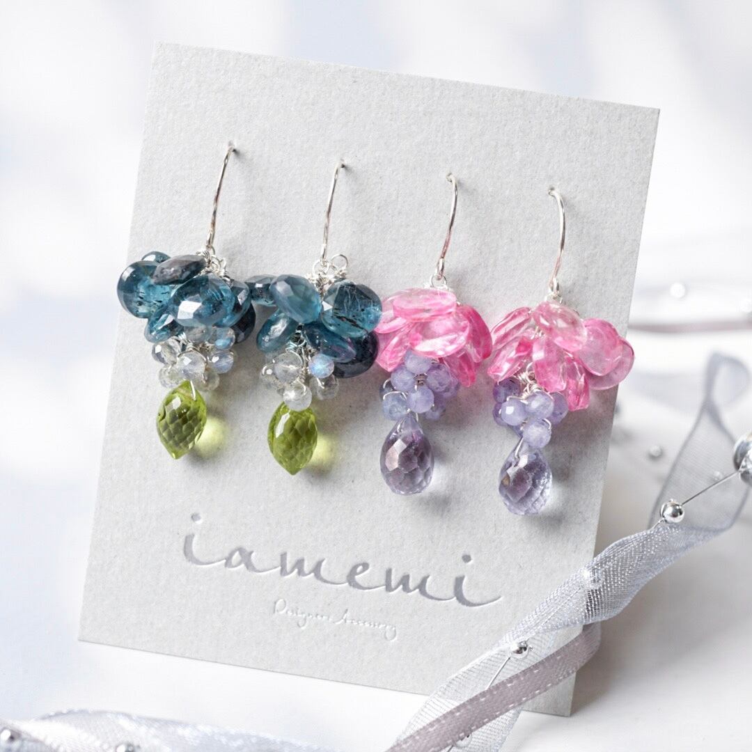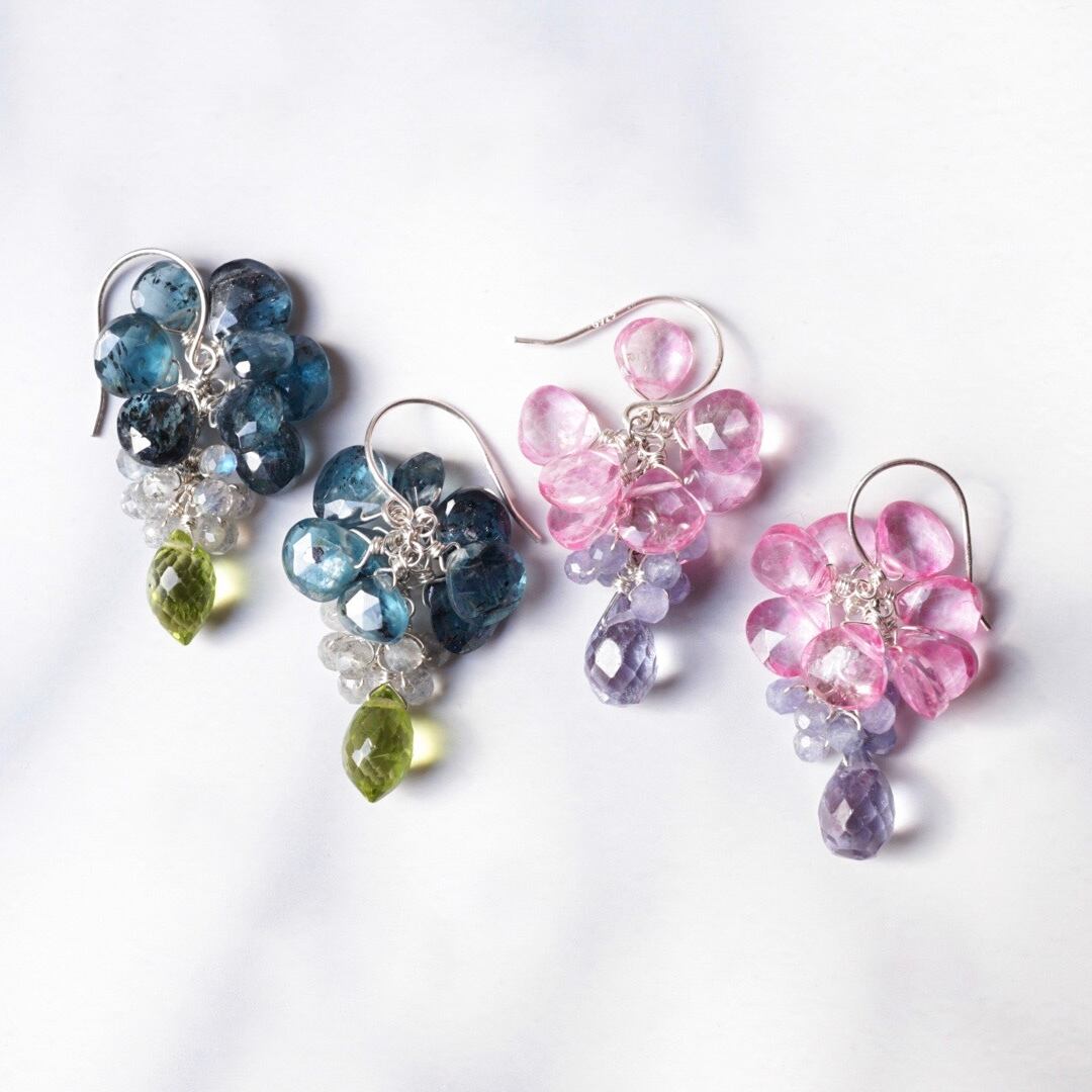 「ピンクの花雫」ピアス イヤリング 天然石 ピンクトパーズ ミスティックタンザナイト シルバー925 樹脂 ノンホール