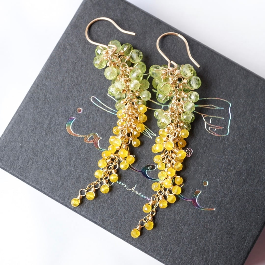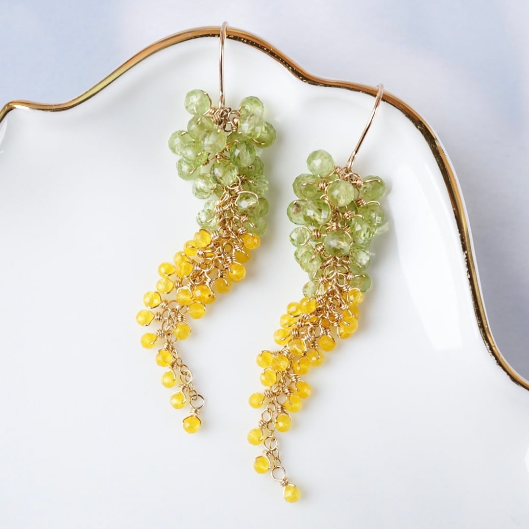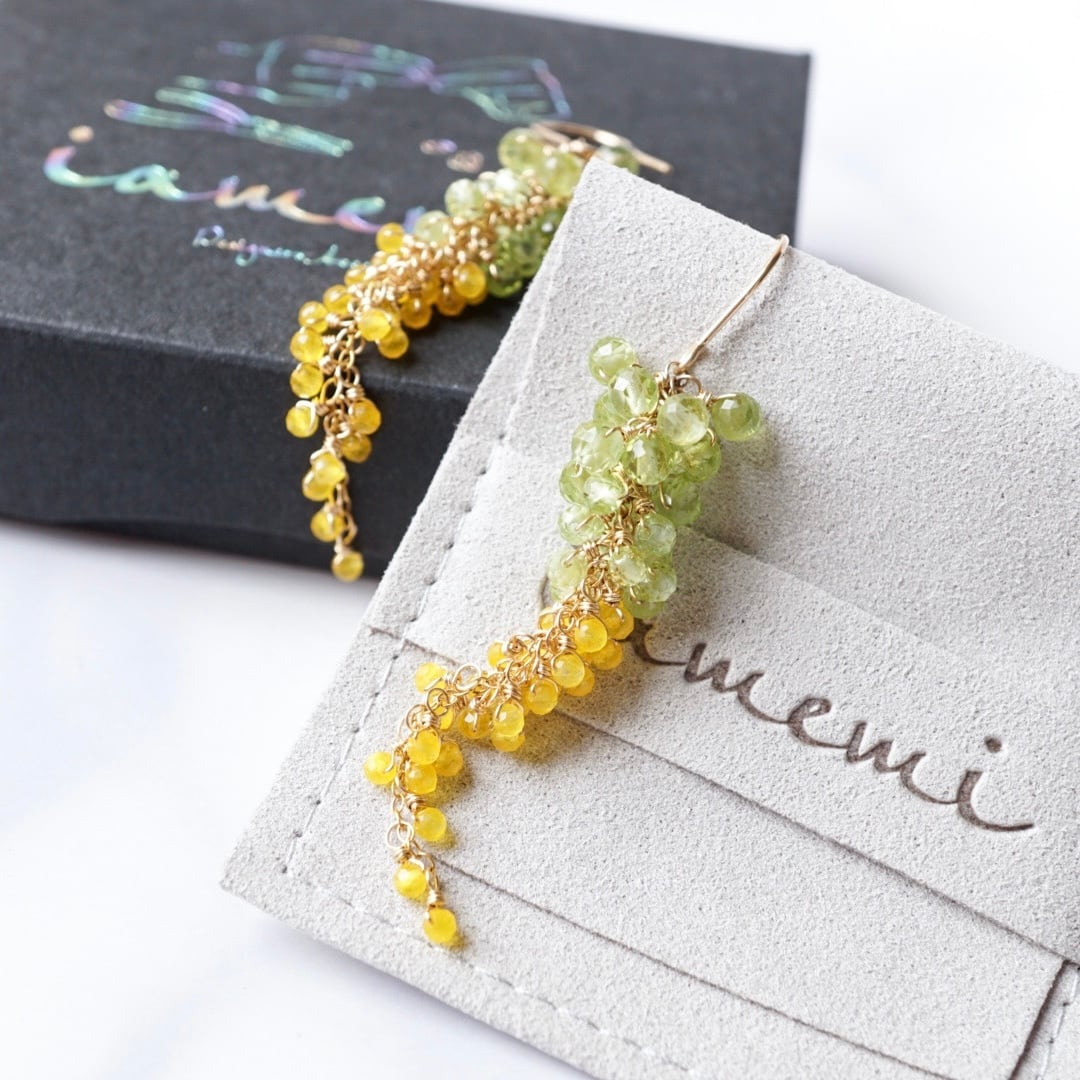 「ミモザ藤」天然石 ペリドット イエロー 8月誕生石 14kgf ピアス イヤリング アレルギー対応 母の日 春 ギフト
