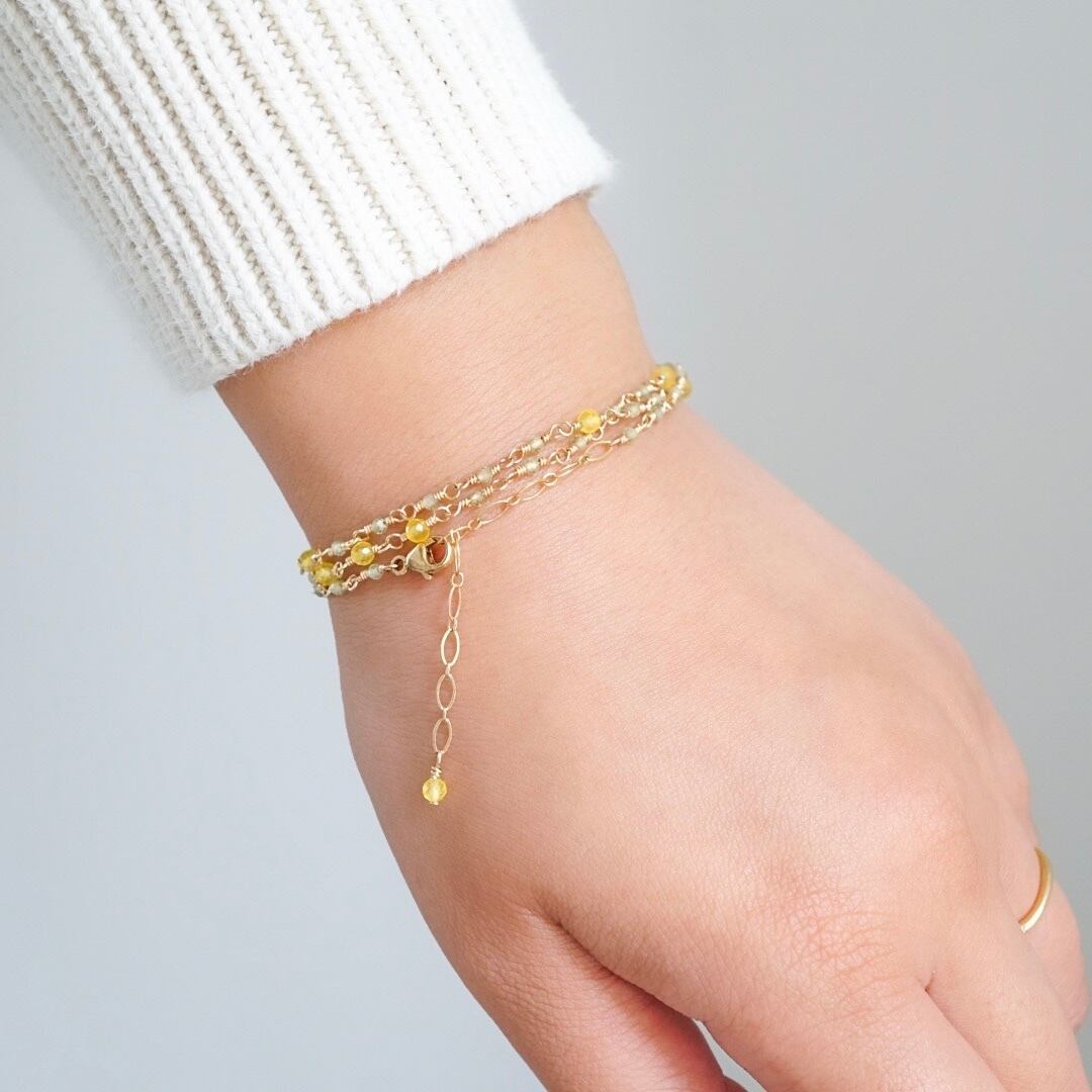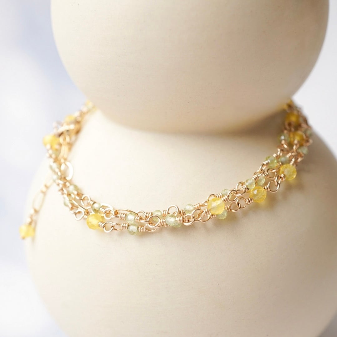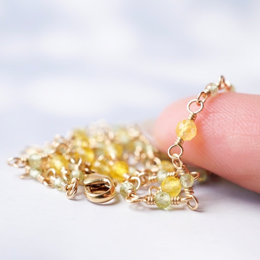 【3way】ミモザ 天然石 ペリドット 14kgf ネックレス ブレスレット アンクレット 母の日 華奢 春 50cm