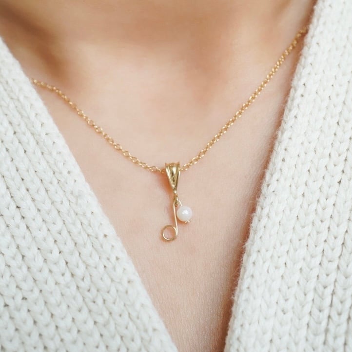 【ネックレス】「小さな音符」八分音符 淡水パール 白 天然石 14kgf ゴールド 金属アレルギー対応 フォーマル