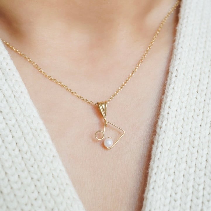 【ネックレス】「小さな音符」八分音符 淡水パール 白 天然石 14kgf ゴールド 金属アレルギー対応 フォーマル