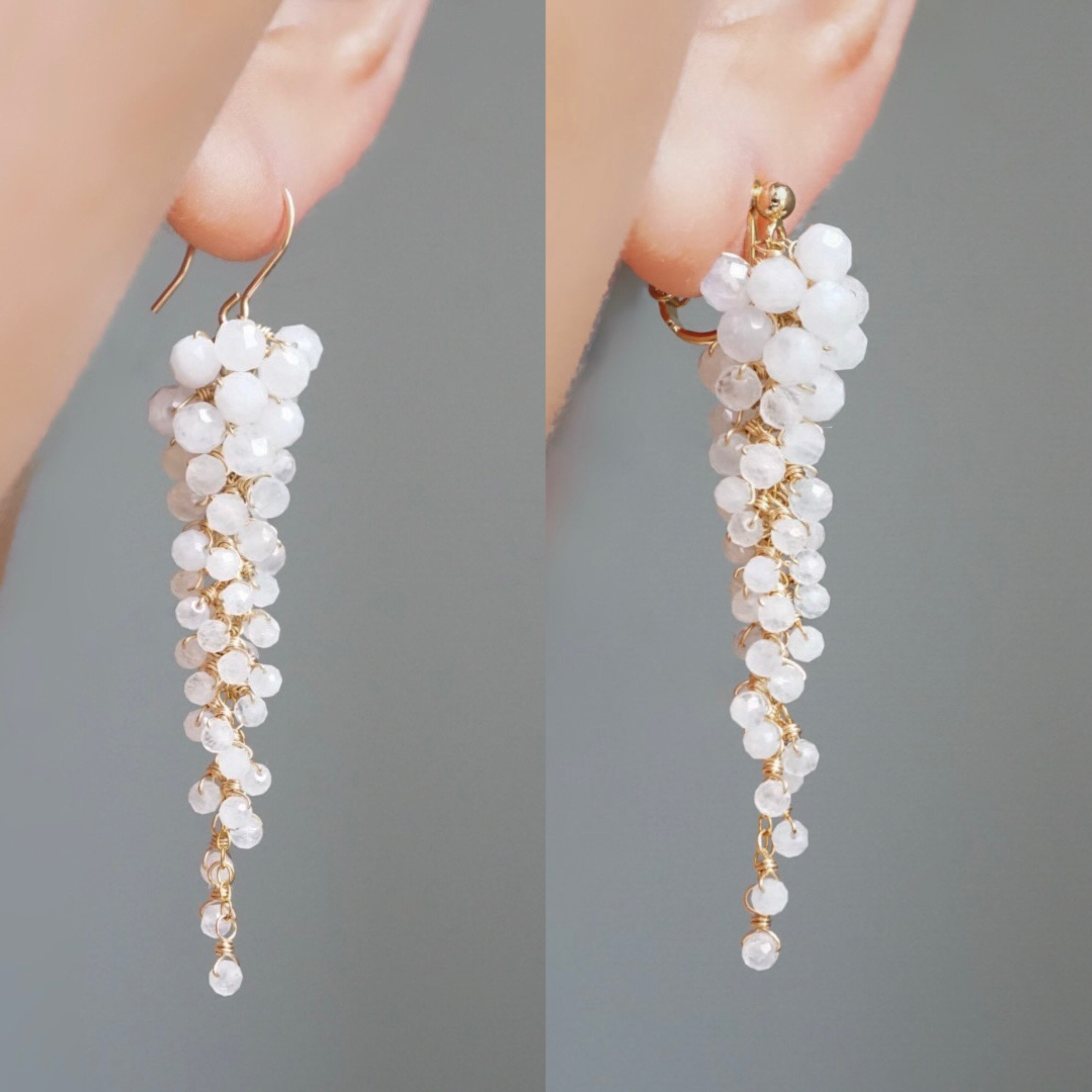 「白藤」藤の花 レインボームーンストーン 天然石 6月 誕生石 14kgf ピアス イヤリング じゃらじゃら ロング